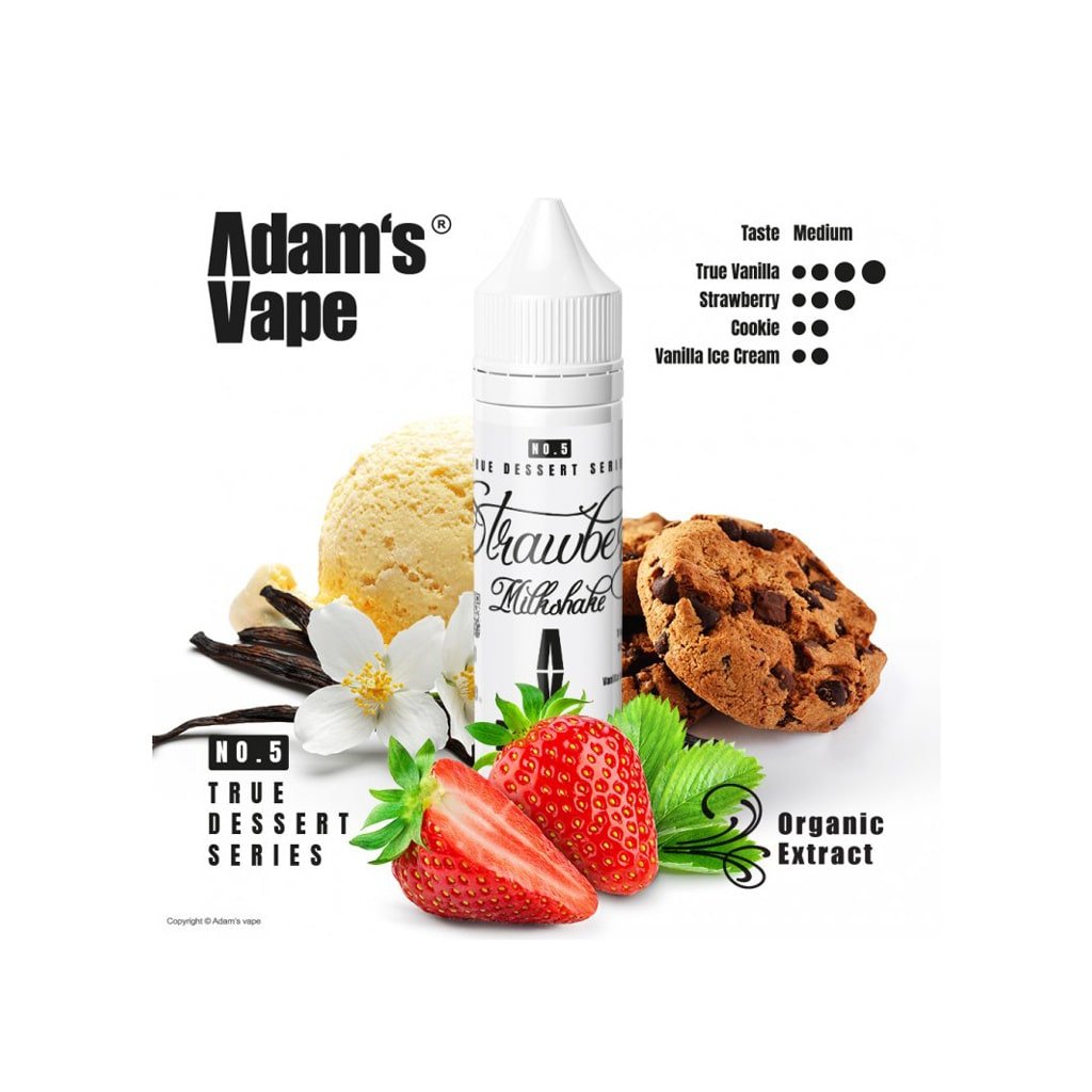 Adams Vape Shake and Vape aroma s příchutí Strawberry Milkshake. Jemná krémová vanilka se šťavnatou sladkostí zralých jahod, které celé kompozici dodávají svěží ovocný tón. Základ doplňuje máslová chuť křehkých sušenek, jež vytváří hřejivý dezertní charakter. Výtažky z vanilky zvýrazňují hloubku chuti a zanechávají dlouhotrvající, sametově sladký dozvuk.