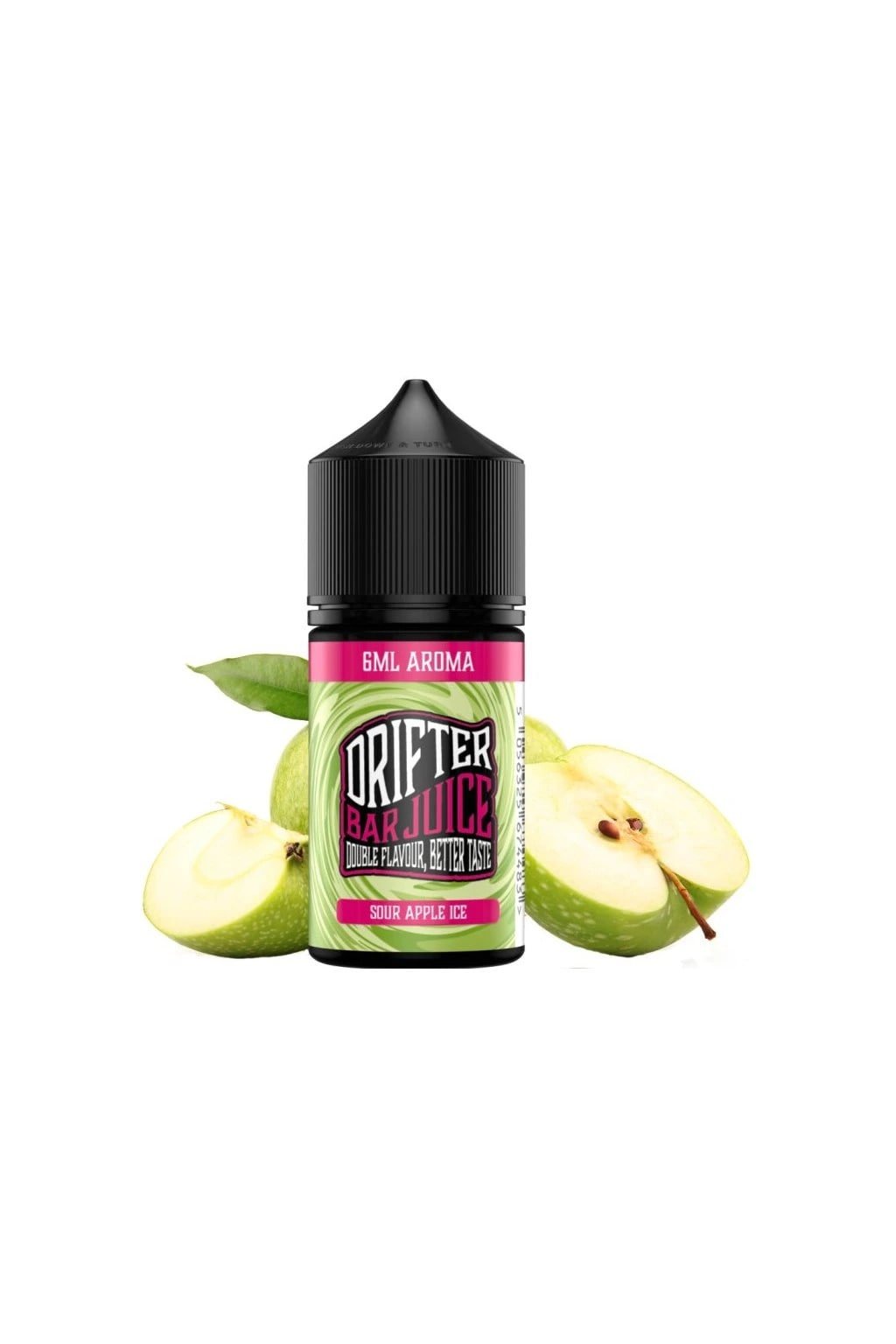 Drifter Bar Juice S&V aroma Sour Apple Ice s příjemně sladkou a jemně kyselou chutí zeleného jablka s přidanými chladivými tóny.