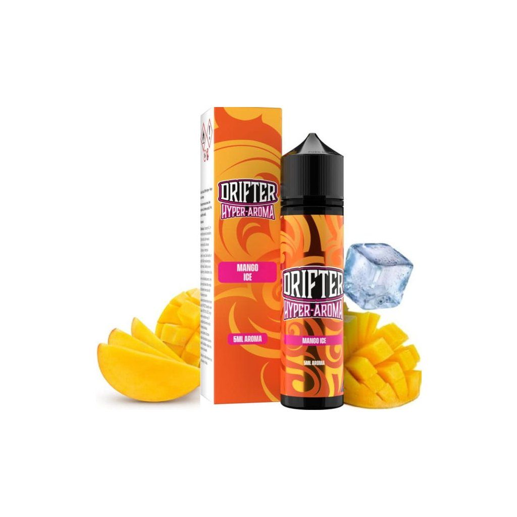 Drifter Hyper 5ml – Mango Ice je Shake and Vape aroma s vysokou koncentrací, které přináší exotickou sladkou chuť zralého manga s osvěžujícím ledovým efektem. V 60ml lahvičce se nachází 5 ml silného aroma.