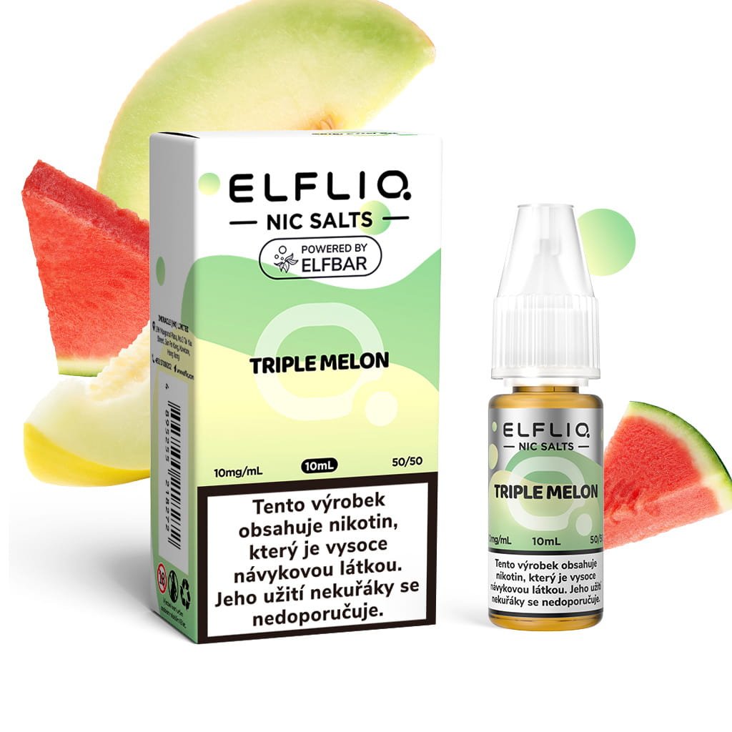 E-liquid ELF LIQ Triple Melon od známého výrobce ELF BAR. Tyto e-liquidy můžete znát především z jednorázových e-cigaret Elf Bar, kde jsou použity a jsou zcela identické. Šťavnatá chuť tvořená trojkombinací vodního melounu, curkového a žlutého melounu. Chuť je velmi šťavnatá a příjemně sladká. Obsah nikotinové soli je 10 nebo 20 mg/ml a obsah e-liquidu v lahvičce je 10ml.