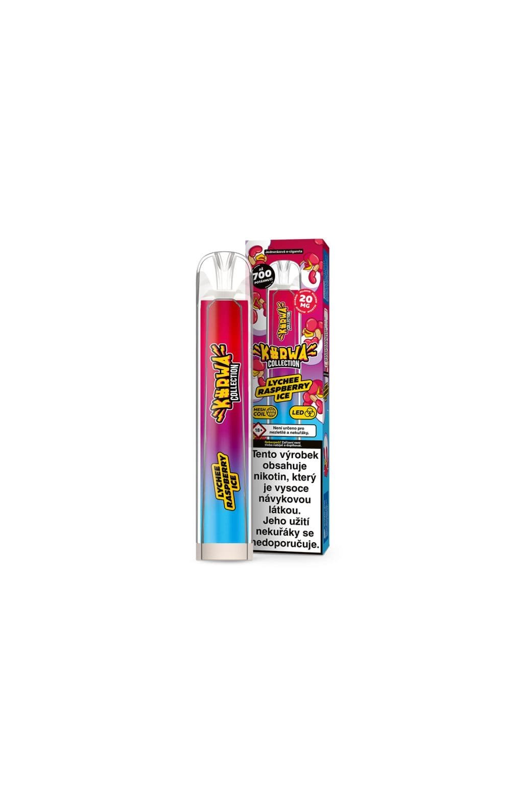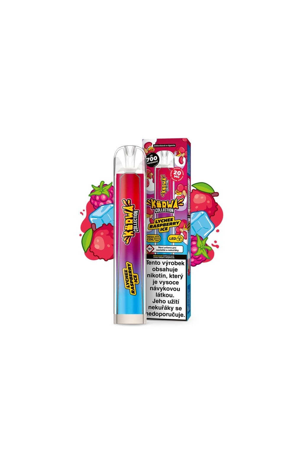 Jednorázová e-cigareta KURWA COLLECTION Lychee Raspberry Ice s jemnou a sladkou chutí liči v kombinaci s příjemně kyselou malinou a ledovými tóny. Jednorázovou e-cigaretu není třeba doplňovat ani dobíjet, aktivuje se potáhnutím, což je vše co je potřeba pro vapování udělat.