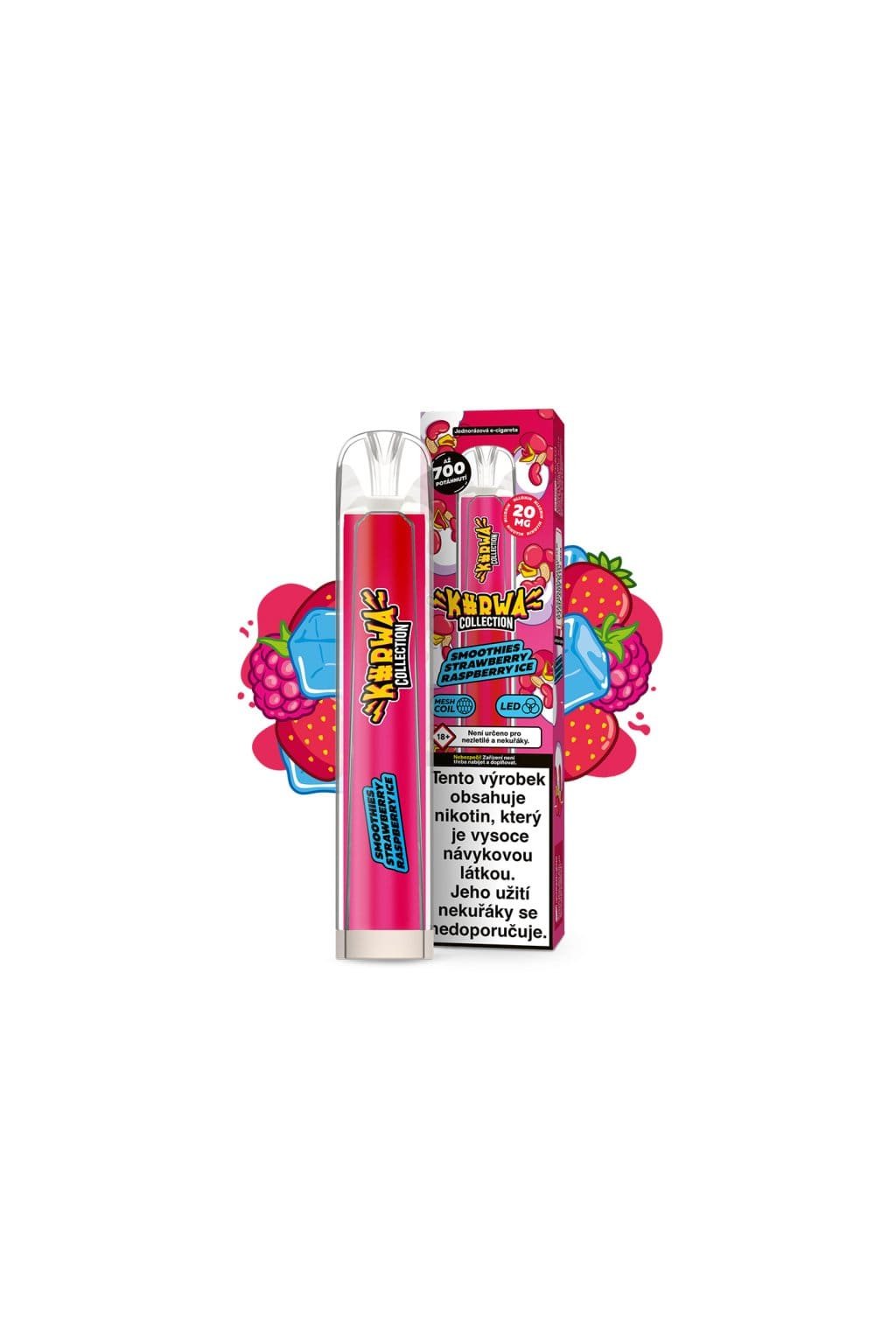 Jednorázová e-cigareta KURWA COLLECTION Smoothies Strawberry Raspberry Ice s chutí ledového mixu sladkých jahod a malin. Jednorázovou e-cigaretu není třeba doplňovat ani dobíjet, aktivuje se potáhnutím, což je vše co je potřeba pro vapování udělat.