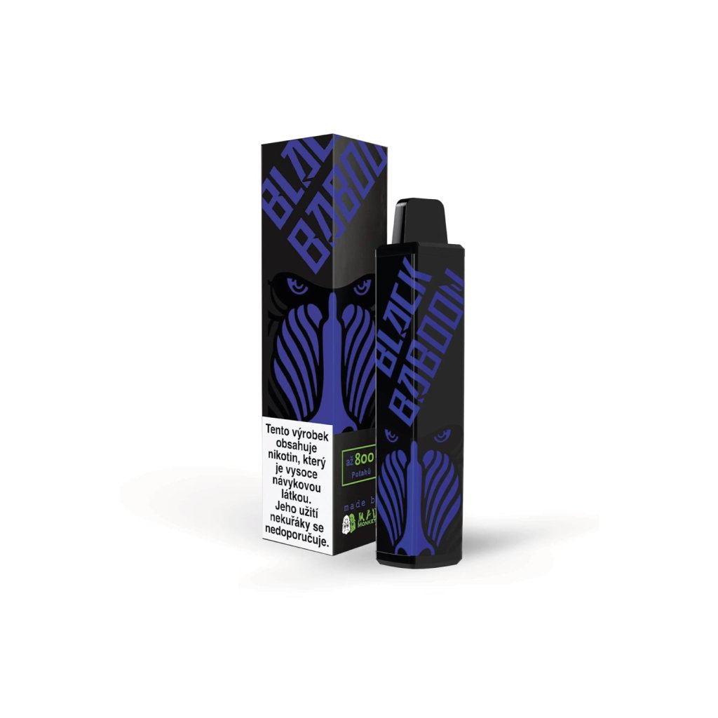 Jednorázové e-cigarety BLACK BABOON přináší na trh unikátně vypadající e-cigarety se zajímavou nabídkou chutí. E-cigareta s originálním designem je naplněna 2ml e-liquidu s obsahem 16 mg/ml nikotinové soli a nabídne tak až 800 potáhnutí. Nabídka příchutí obsahuje zejména ovocné speciality. Příchutě jsou perfektně zpracované, výrazné a také stabilní. To znamená, že křivka chuťového podání je takřka vodorovná po celou dobu životnosti e-cigarety.