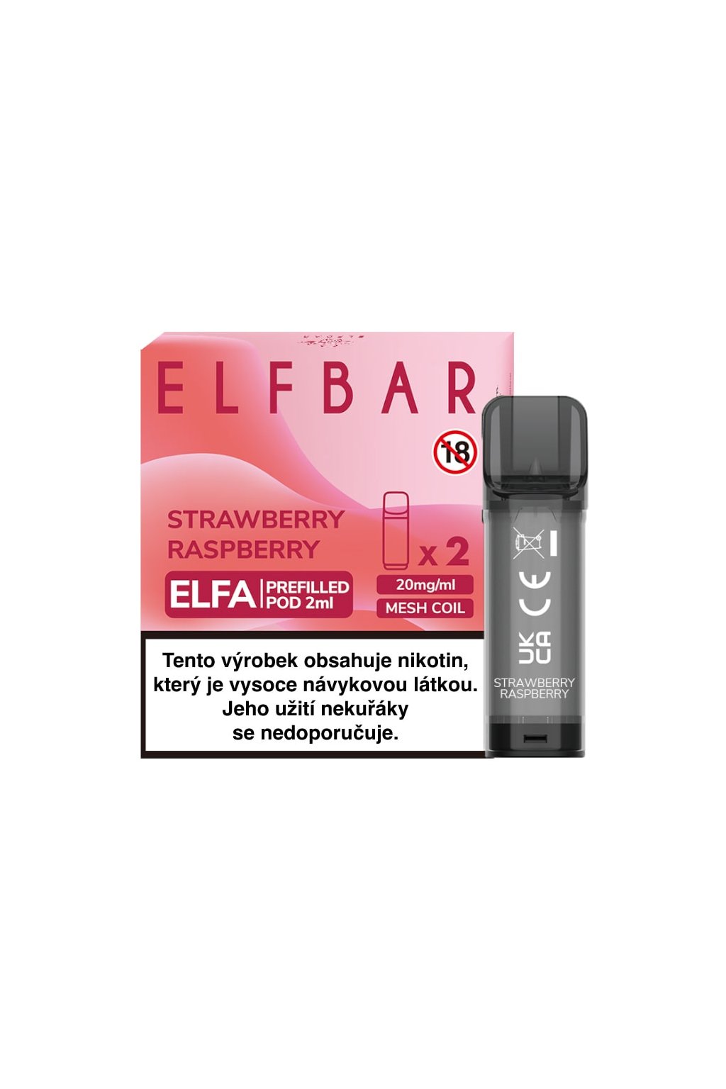 ELF BAR ELFA POD STRAWBERRY RASPBERRY je předplněný POD 2ml e-liquidu s chutí kombinující sladké jahody a lehce kyselé maliny a 20 mg/ml nikotinové soli. Díky vylepšenému žhavícímu pletivu je příchuť o něco výraznější a prokreslenější než v jednorázových e-cigaretách ELF BAR.