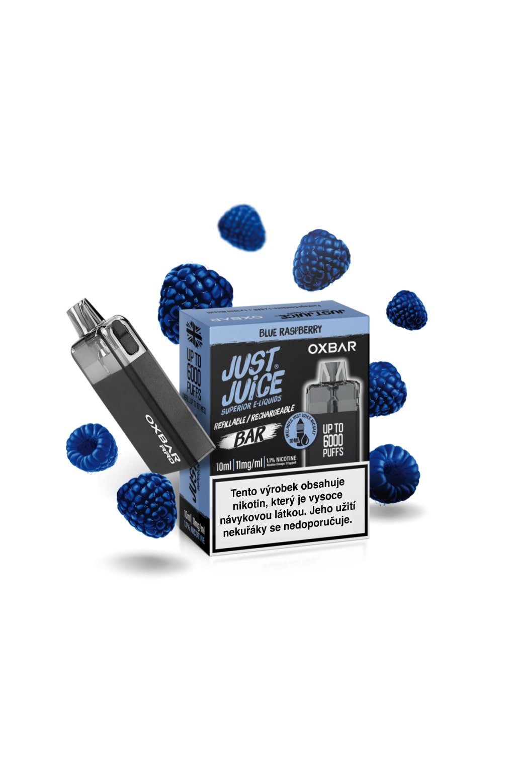 E-cigareta OXBAR RRD je v balení společně s jednou z nejoblíbenějších příchutí značky Just Juice. E-liquid Just Juice Salt Blue Raspberry s nikotinovou solí s obsahem nikotinu 11 mg/ml a výraznou, kyselou chutí modré maliny.