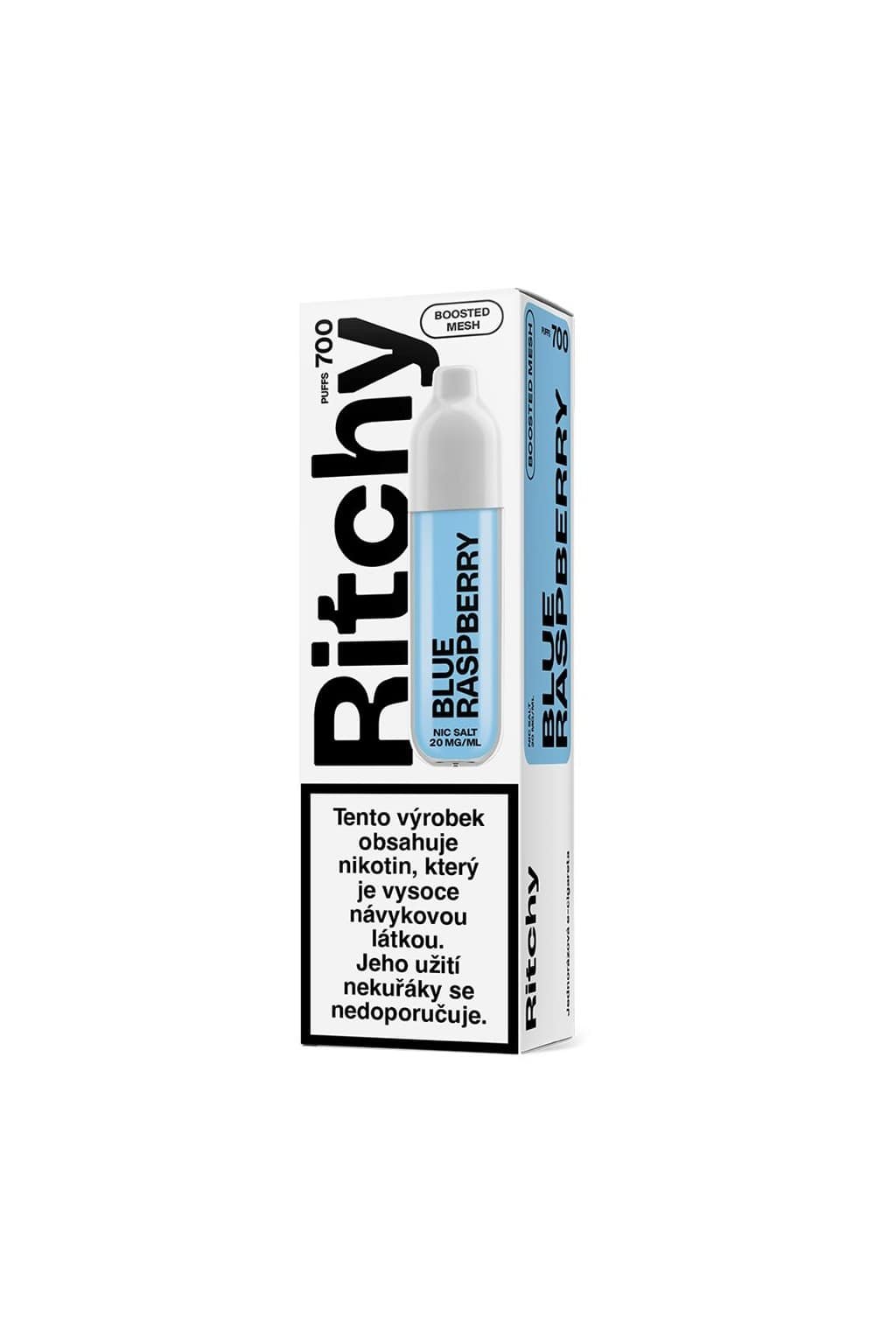 Jednorázová e-cigareta RITCHY BAR 700 BLUE RASPBERRY s chutí existující pouze ve světe e-cigaret - modrá maliny. Velmi zajímavá chuť má sladko-kyselé tóny šťavnaté maliny. E-cigareta má nový, jednoduchý ale velmi stylový vzhled. Jedná se o standardní jednorázovou e-cigaretu, k jejímu provozu tak stačí pouhé potáhnutí. Nenabíjí se, nedoplňuje se e-liquidem ani se zde nemění komponenty.